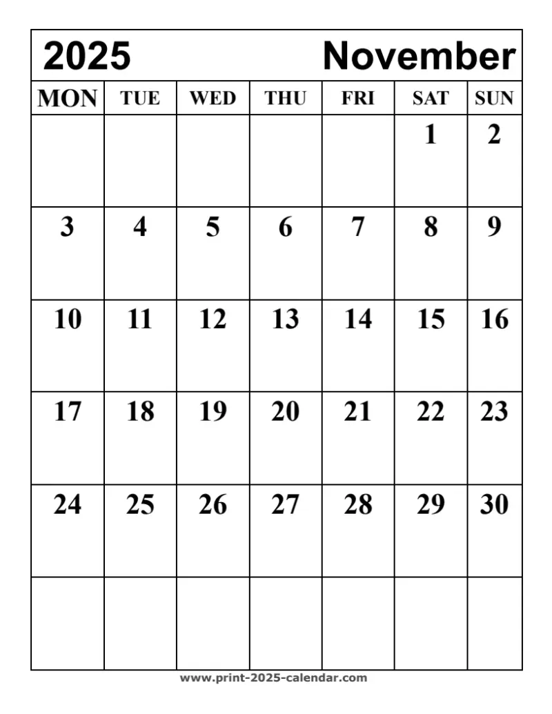 This print november 2025 calendar that you download from www.print-2025-calendar.com is free printable and editable as per your needs. These calendars are designed to be used by people of all walks of life. Print november 2025 calendar could be used as free 2025 business calendar, school calendar, 2025 office calendar, 2025 corporate calendar, personal calendar and event calendar 2025 . We provide 2025 monthly calendars, and blank calendars. All these calendars for 2025 are free to download and use. Both Landscape and Portrait layout calendars are given. Choose and use based on your preference.