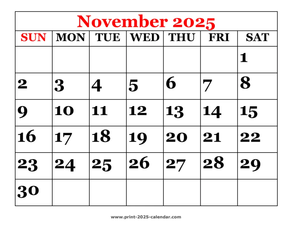This printable 2025 november calendar that you download from www.print-2025-calendar.com is free printable and editable as per your needs. These calendars are designed to be used by people of all walks of life. Printable 2025 november calendar could be used as free 2025 business calendar, school calendar, 2025 office calendar, 2025 corporate calendar, personal calendar and event calendar 2025 . We provide 2025 monthly calendars, and blank calendars. All these calendars for 2025 are free to download and use. Both Landscape and Portrait layout calendars are given. Choose and use based on your preference.